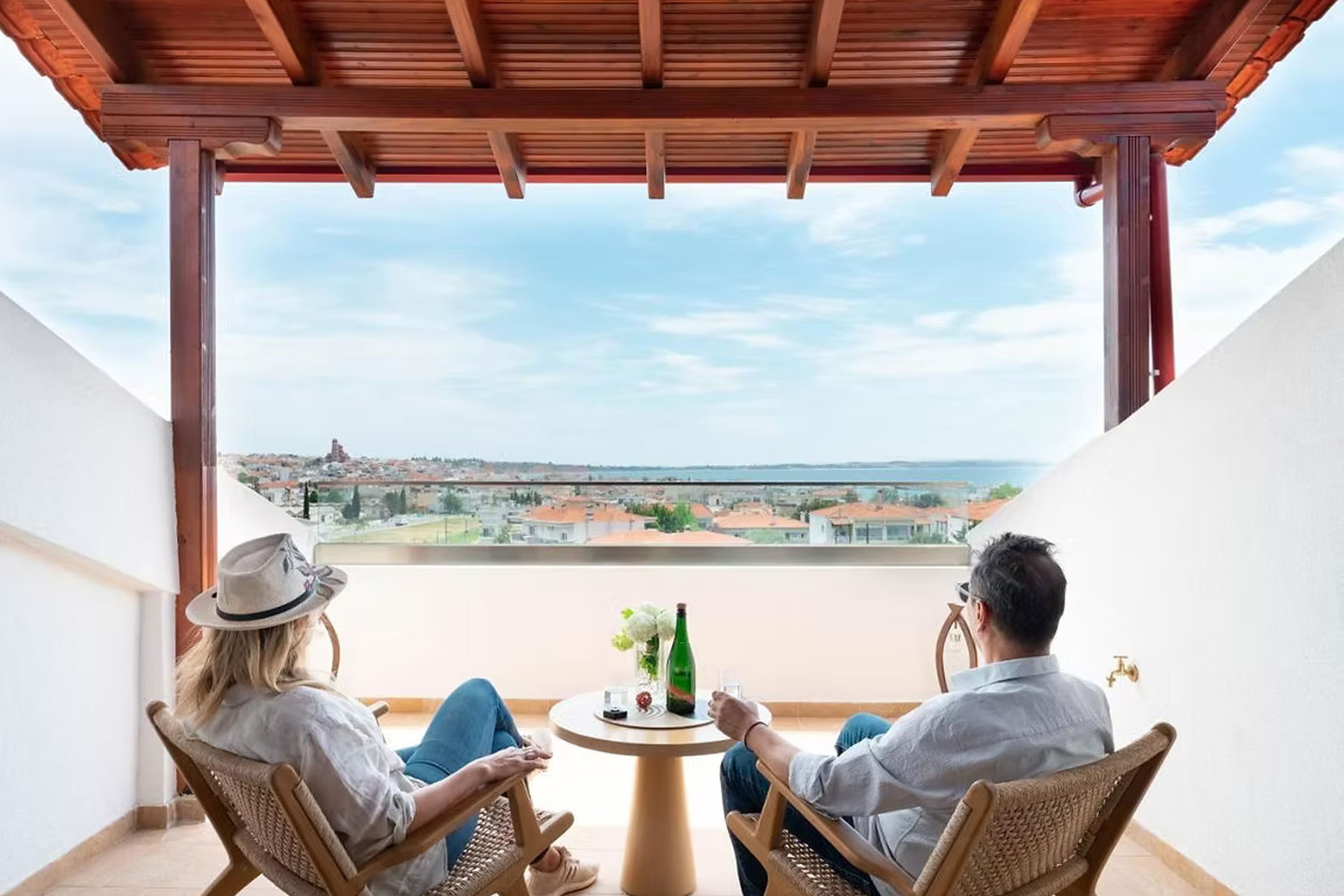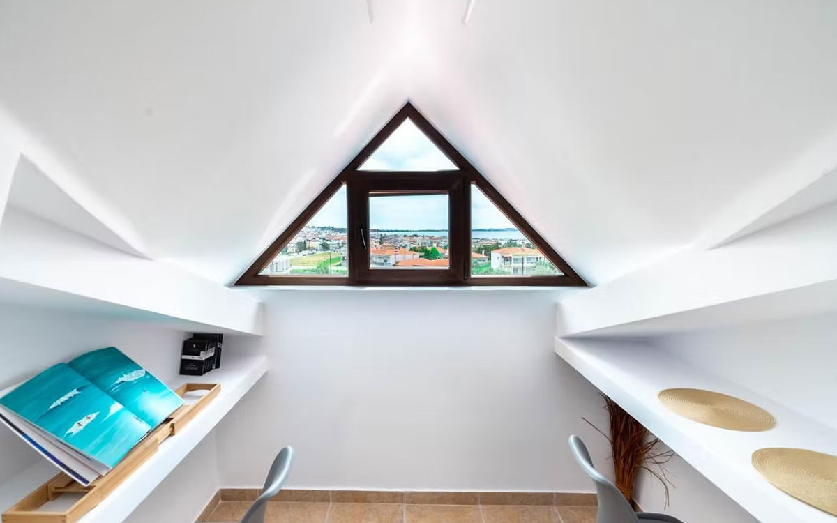 Modern suite up to 4 guests with panoramic views of the sea and the city of N. Moudania . Stylish accommodation for couples or families , close to shops, restaurants and beaches.